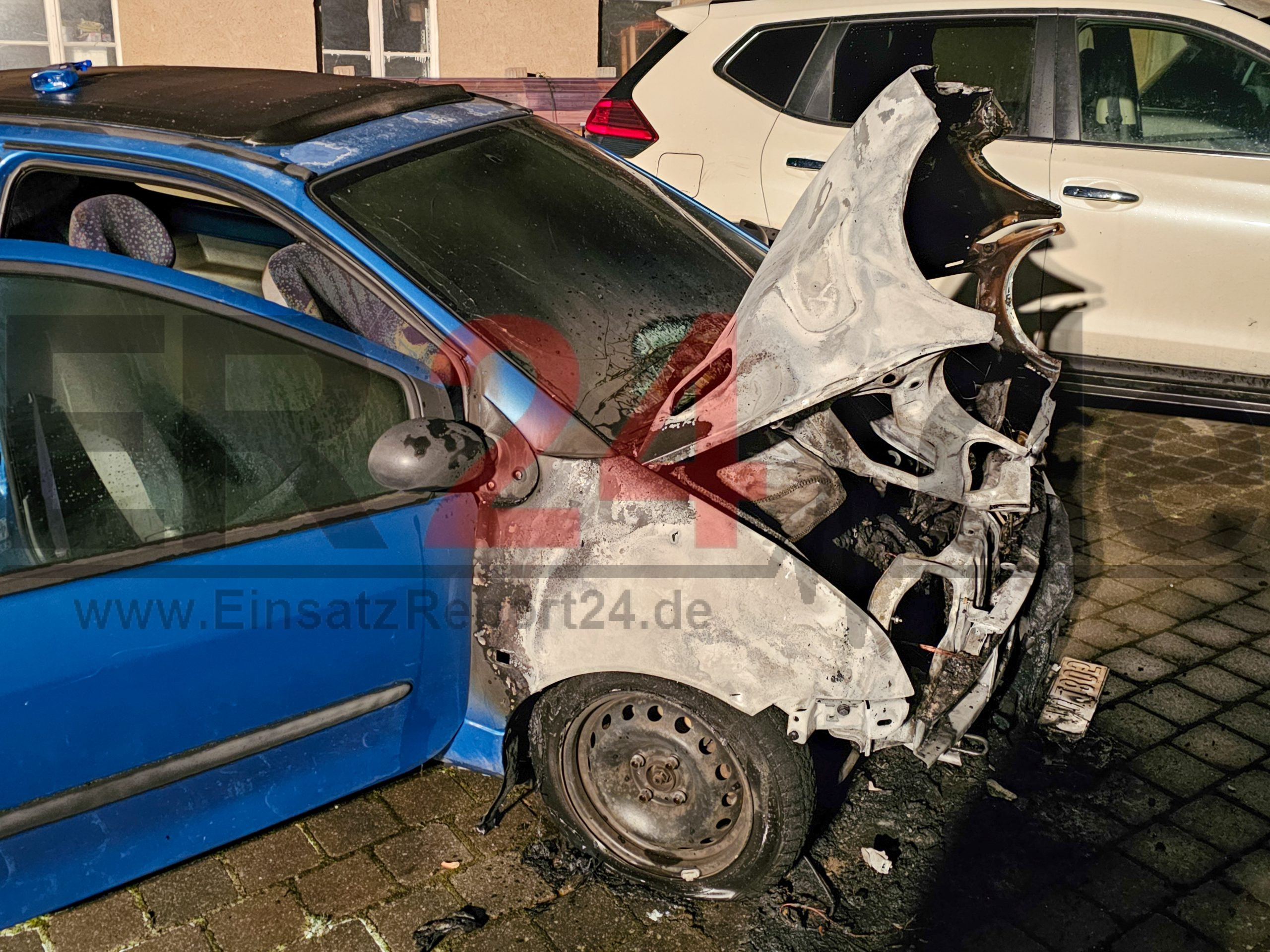Polizei hat die Ermittlungen zur Brandursache aufgenommen – keine Verletzten – Kleinwagen wird total zerstört