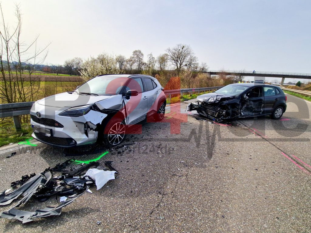 Wie ein Sprecher der Polizei Offenburg mitteilte, kam es zu einem Frontalzusammenstoß zwischen einem Toyota und einem VW. Ein nachfolgendes Fahrzeug konnte offenbar nicht mehr rechtzeitig bremsen und fuhr in die bereits entstandene Unfallstelle.