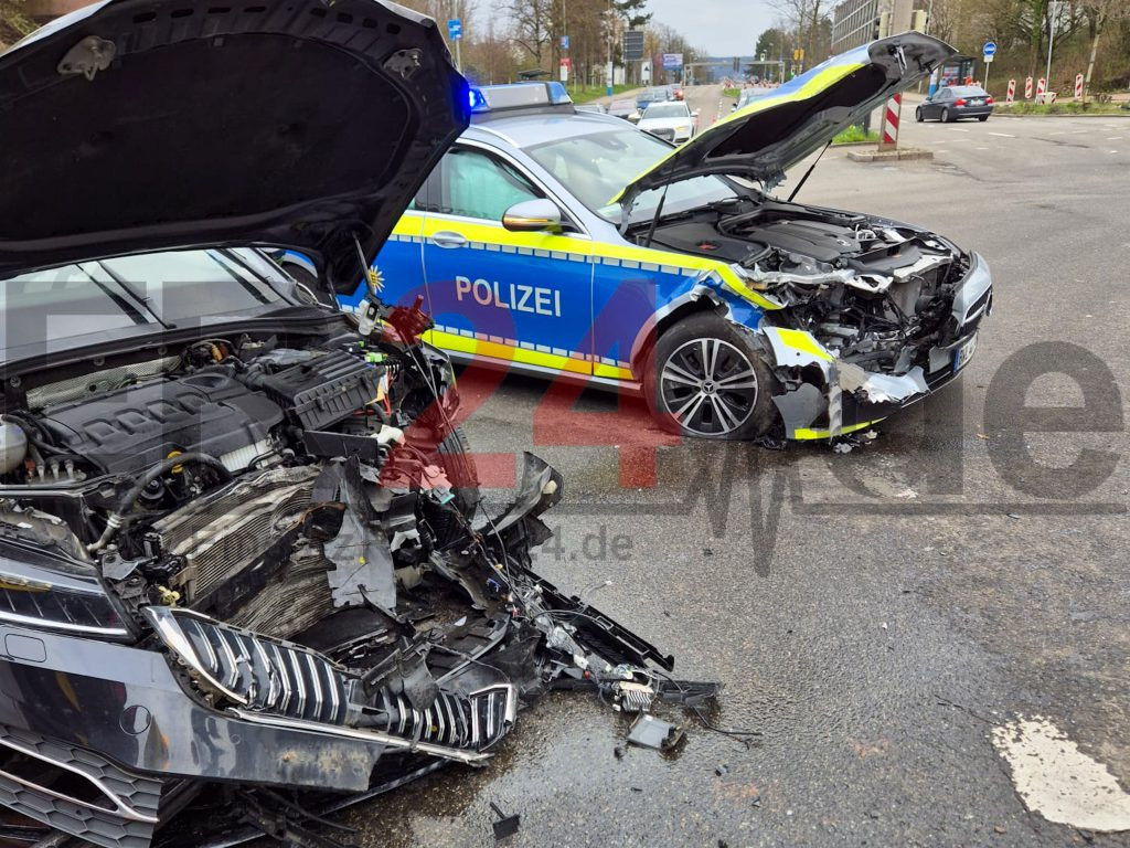 An der Kreuzung Dietlinger Straße und Wildbader Straße im Stadtteil Brötzingen ist gegen 16 Uhr ein Streifenwagen der Polizei mit einem Skoda zusammengestoßen.