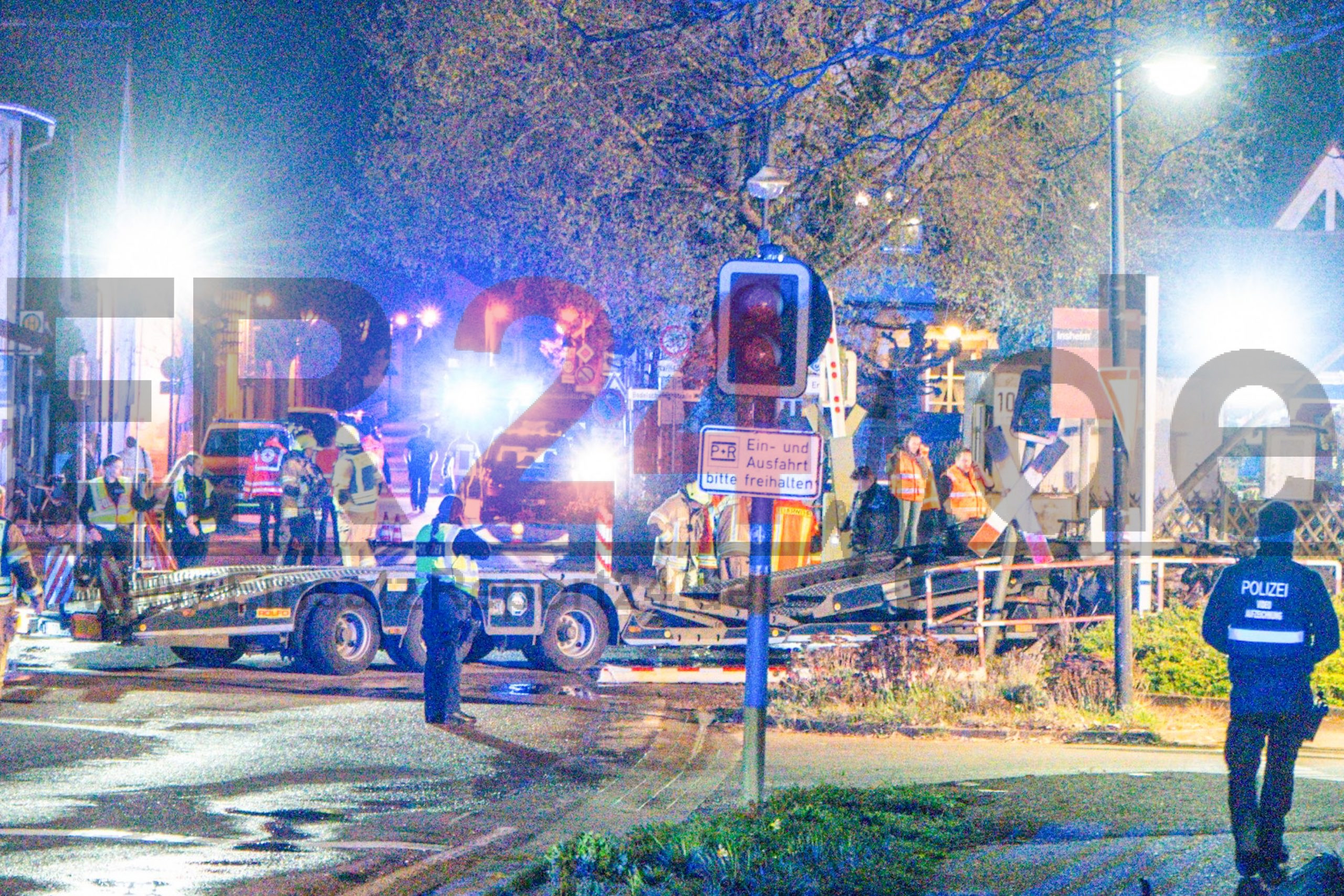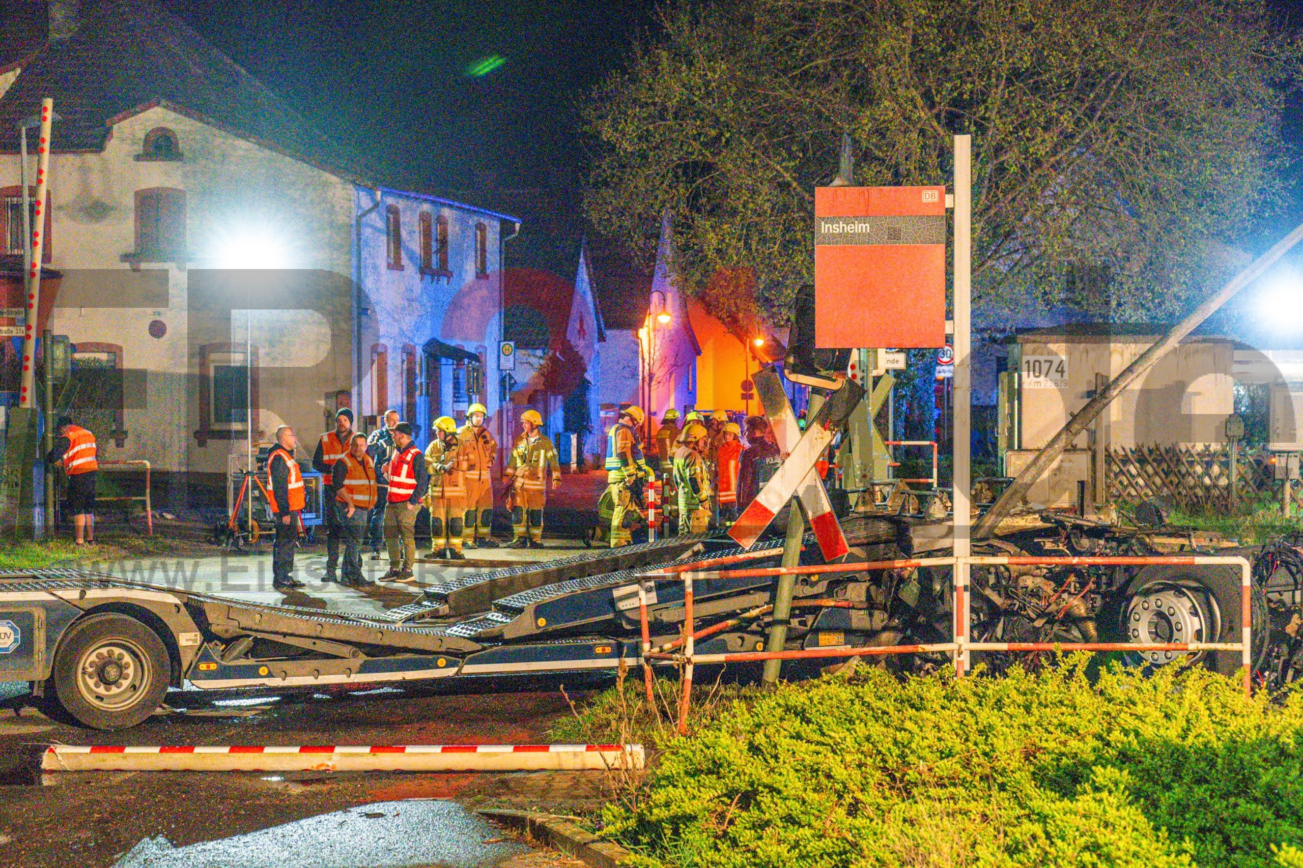 (fg) In der Südpfalz ist es am Montagabend gegen 19 Uhr zu einem schweren Unfall an einem Bahnübergang gekommen. Im südpfälzischen Insheim (Landkreis Südliche Weinstraße) kollidierte ein Personenzug mit einem Autotransporter. Wie Einsatzleiter Jürgen Fink von der Feuerwehr berichtete, gingen bereits kurz nach dem Unfall zahlreiche Notrufe ein. Schon auf der Anfahrt sei eine starke Rauchwolke sichtbar gewesen. Beim Eintreffen der Einsatzkräfte stand der Lastwagen bereits lichterloh in Flammen. Auslöser waren offenbar entzündete Betriebsstoffe. Der Zug kam nach der Kollision etwa 300 Meter hinter dem Bahnübergang zum Stehen. Alle Insassen konnten den Zug eigenständig verlassen. „Unsere ersten Maßnahmen waren die Erstversorgung der Verletzten und die sofortige Brandbekämpfung“, erklärte Fink. Das Feuer sei jedoch rasch unter Kontrolle gebracht worden. Nach Angaben der Feuerwehr wurde niemand in den Fahrzeugen eingeklemmt. Der Fahrer des Lastwagens konnte sich noch vor der Kollision in Sicherheit bringen. Insgesamt waren der Lkw-Fahrer sowie sieben Insassen des Zuges betroffen. Vier von ihnen wurden vorsorglich in ein Krankenhaus gebracht. Hintergrund des Unfalls war offenbar ein erhöhtes Verkehrsaufkommen: Aufgrund einer Sperrung auf einer nahegelegenen Autobahn mussten zahlreiche Verkehrsteilnehmer durch Insheim ausweichen. Es kam zu einem Rückstau, in dessen Folge der Autotransporter auf dem Bahnübergang zum Stehen kam, als sich der Zug näherte. Der Lkw-Fahrer konnte sich in letzter Sekunde retten. ,,Es gab einen lauten Knall und dann eine hohe Flamme", schildert ein Augenzeuge und Anwohner das Geschehen am Abend. Die genaue Unfallursache ist nun Gegenstand polizeilicher Ermittlungen. Noch am späten Abend waren ein Gutachter sowie Ermittler der Kriminalpolizei vor Ort. Die betroffene Zugstrecke musste vollständig gesperrt werden.