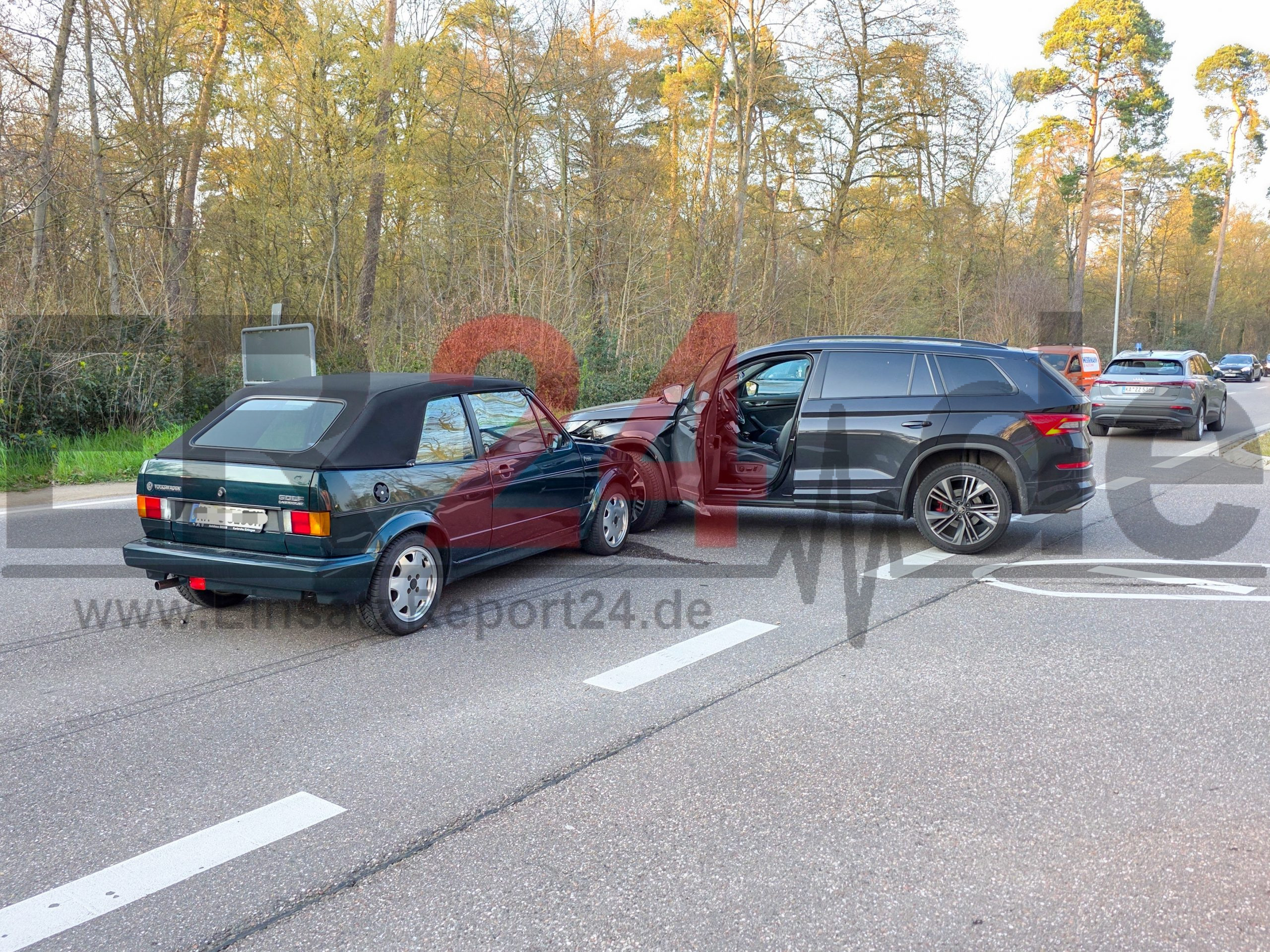 An der Kreuzung Theodor-Heuss-Allee Ecke Kolberger Straße waren laut Polizei ein Skoda Kodiaq und ein VW Golf Cabrio kollidiert. Durch die Kollision wurden beide Fahrzeuge erheblich beschädigt.