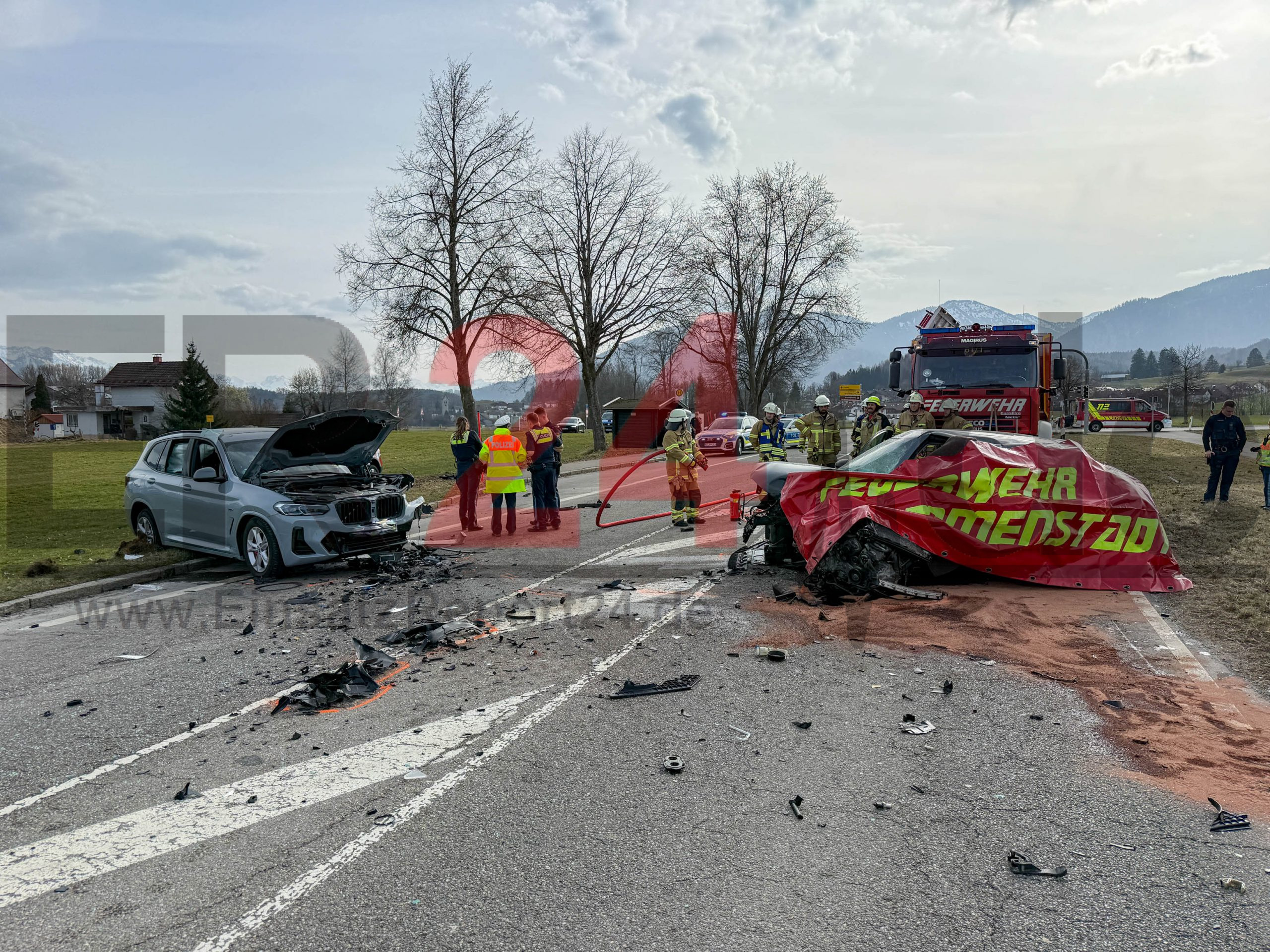 Kreisstraße nach Unfall voll gesperrt – zahlreiche Feuerwehr und Rettungskräfte im Großeinsatz