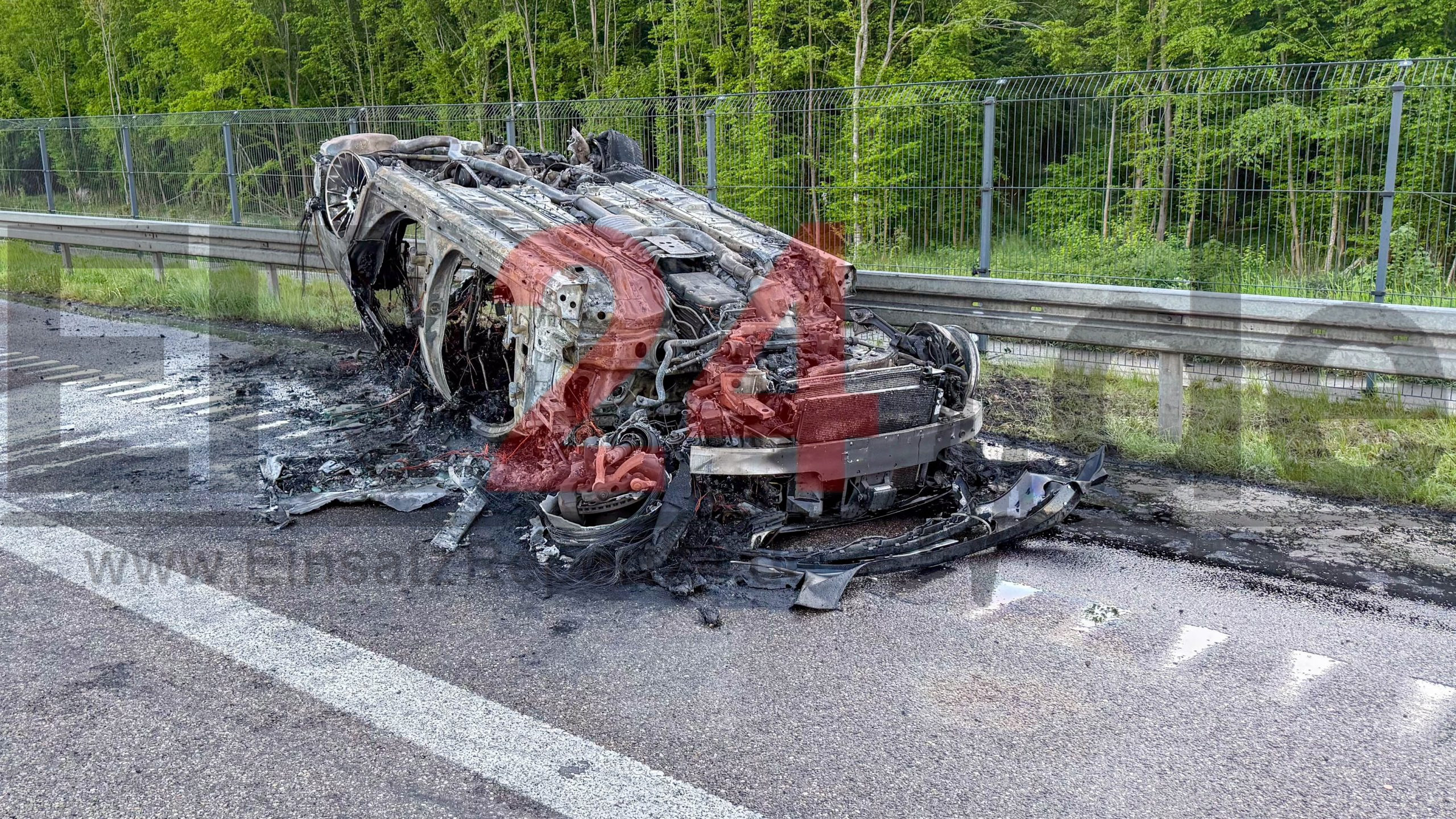 Feuerwehr Lahr vor Ort – Autowrack brennt komplett aus – A5 in Richtung Freiburg voll gesperrt – Ermittlungen zum Unfallhergang dauern an