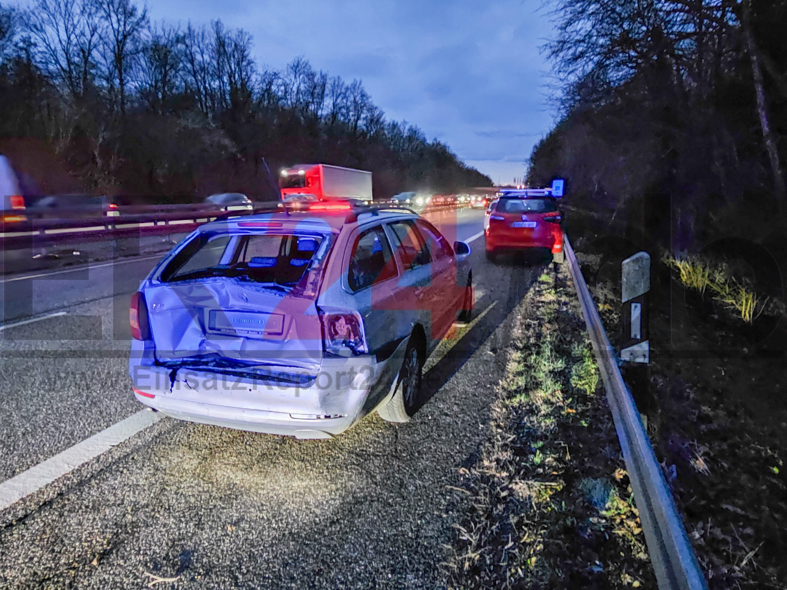 Einsatzkräfte vor Ort – Bundesstraße voll gesperrt – der Fahrer des Transporters wird leicht verletzt