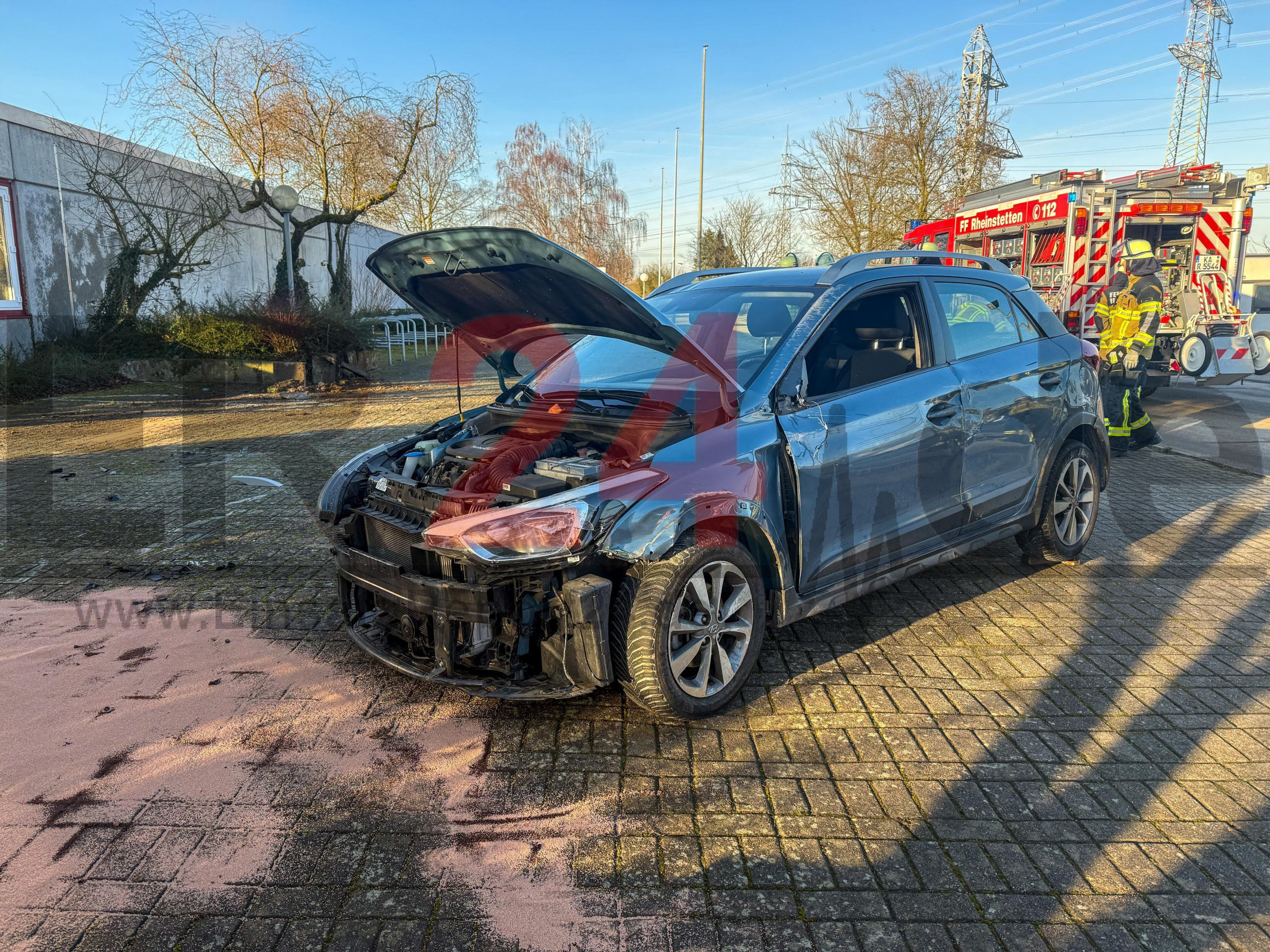 Kurioser Fahrfehler auf Parkplatz löst Großeinsatz der Rettungskräfte aus – Autofahrer verliert beim Ausparken Kontrolle – Wagen beschleunigt, überquert Bordstein und prallt gegen Mauer und Wagen kippt auf Seite – Feuerwehr befreit Fahrer und stellt beschädigten Wagen wieder auf die Räder – Fahrer schwerverletzt in Klinik gebracht