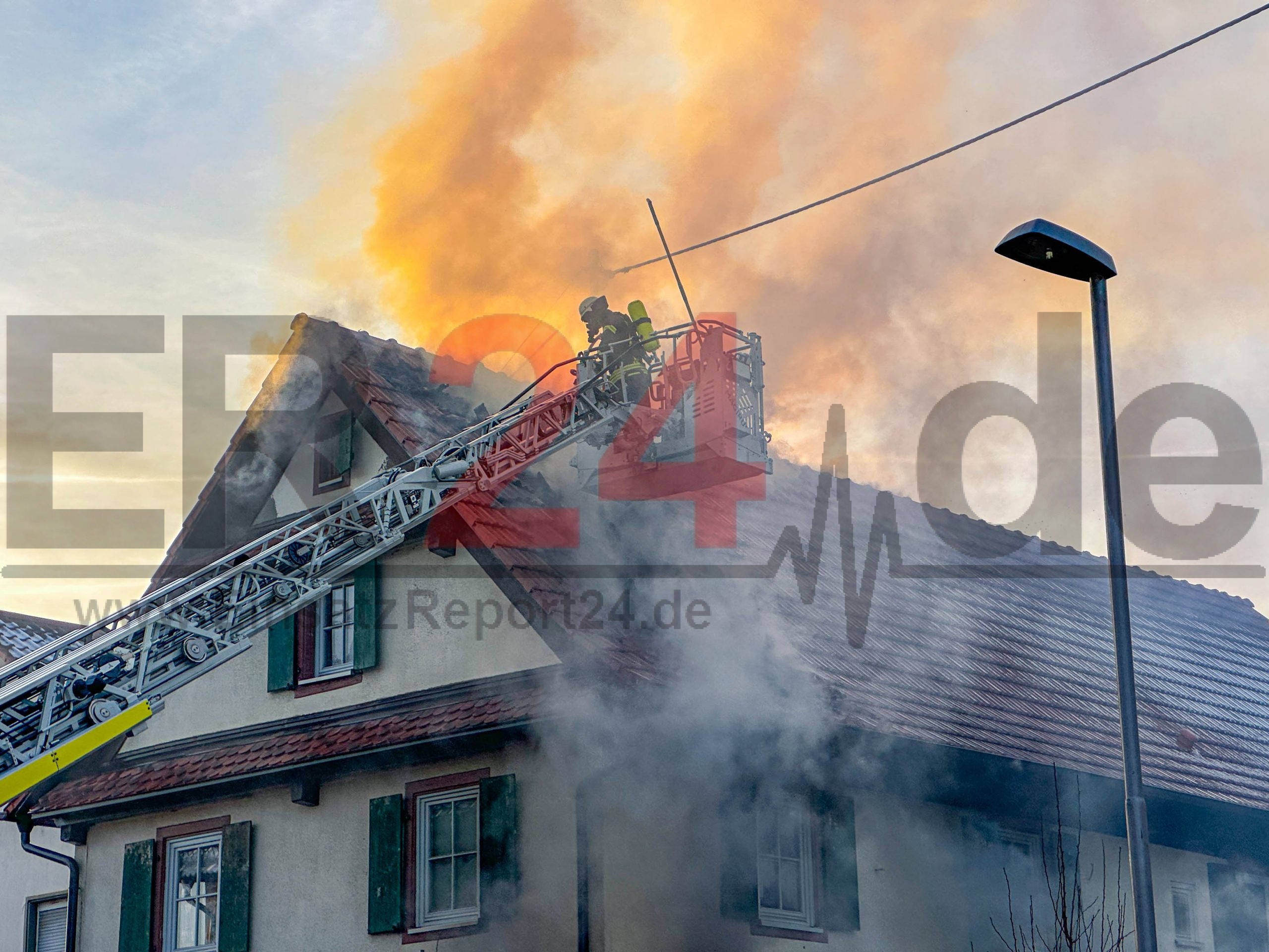 Feuerwehr und Rettungskräfte im Großeinsatz – mutmaßlicher Silvesterkracher setzte den Anbau in Brand – Polizei ermittelt