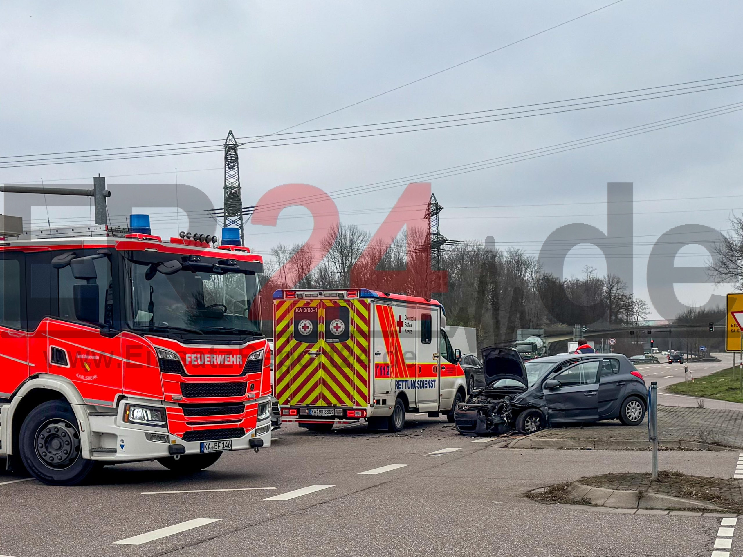 Kastenwagen prallt an Kreuzung zur Karlsruher Südtangente mit Hyundai zusammen – beide Fahrzeuge werden total beschädigt – zwei Personen müssen vom Rettungsdienst versorgt werden
