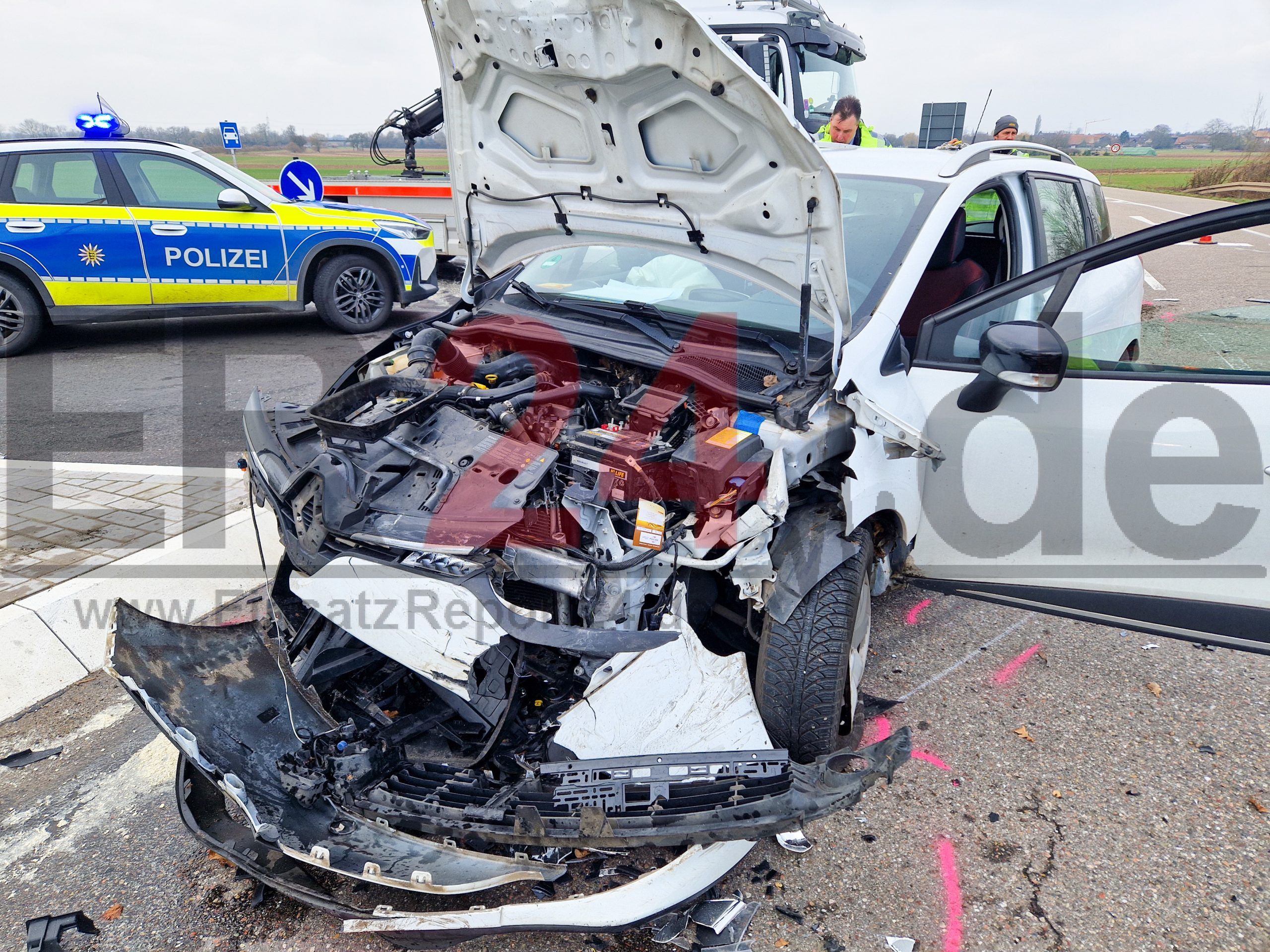 Feuerwehr und Rettungskräfte mit Großaufgebot im Einsatz – großes Trümmerfeld auf Bundesstraße – Gutachter soll Unfallursache klären