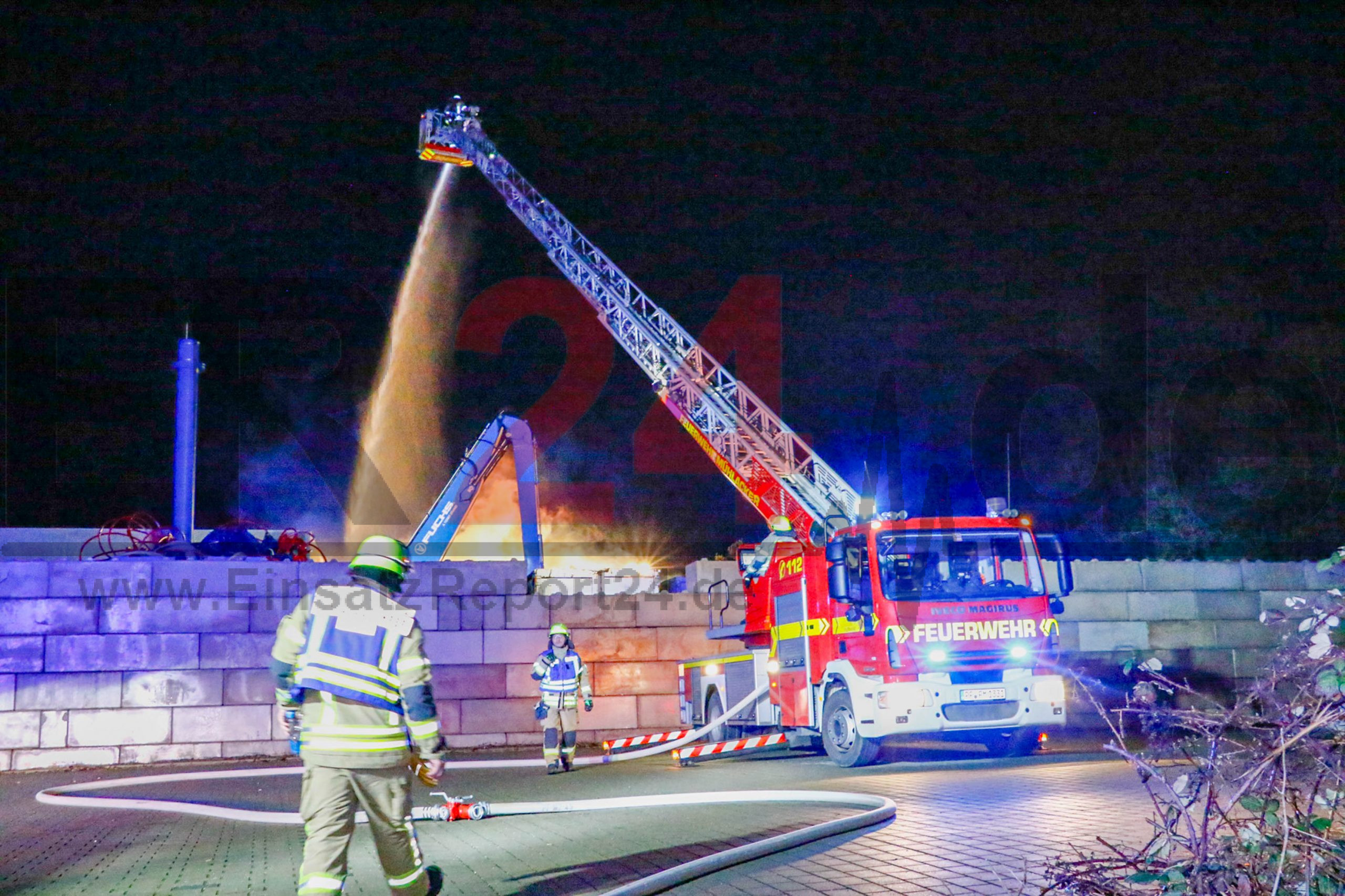 Feuer in Recyclingfirma ausgebrochen – Schrotthaufen steht in Flammen – starke Rauchwolke steigt auf – Bundesstraße muss gesperrt werden – Feuerwehr im Großeinsatz