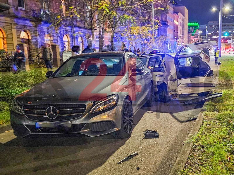 Drei Autos kollidieren in der Karlsruher Oststadt – Ferrari wird auf Straßenbahngleise geschleudert und kommt an Ampelmast zum Stehen – Bahnverkehr unterbrochen – hoher Schaden entstanden