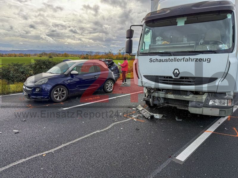 Zwei Autos von Laster aufeinandergeschoben – Mehrere Verletzte – Trümmerfeld auf Fahrbahn – Vollsperrung der Bundesstraße