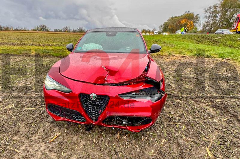 Drei Fahrzeuge verunfallen auf Bundesstraße – Opel Corsa und Alpha Romeo werden in Acker geschleudert – VW Tiguan landet in den Leitplanken – eine Person wird verletzt – weitere Person wird wegen Verdachts der Alkoholisierung zur Polizeiwache zugeführt