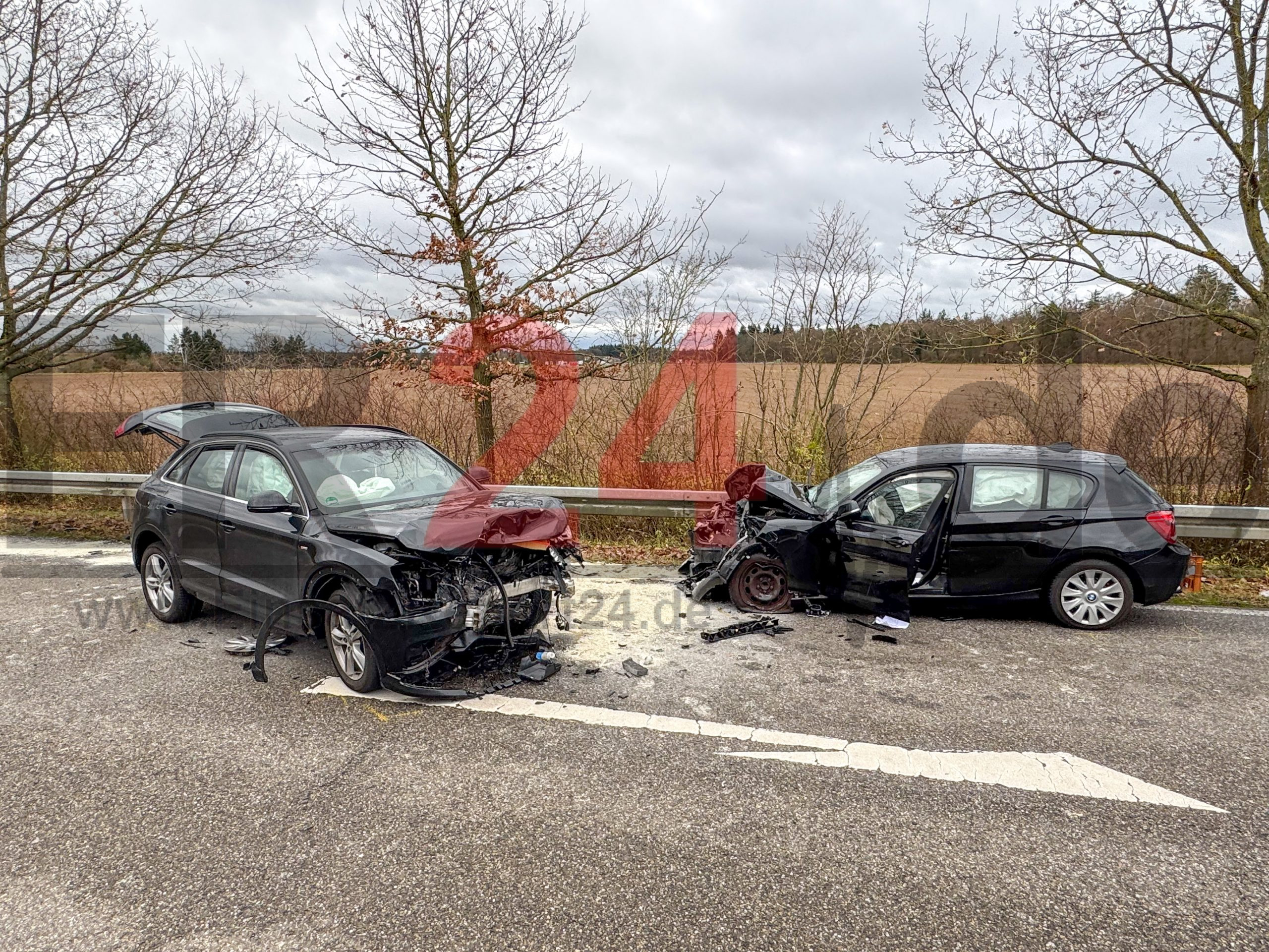 Zwei Fahrzeuge prallen in leichter Kurve auf Landstraße frontal zusammen – beide Fahrer erleiden schwere Verletzungen – Rettungshubschrauber im Einsatz