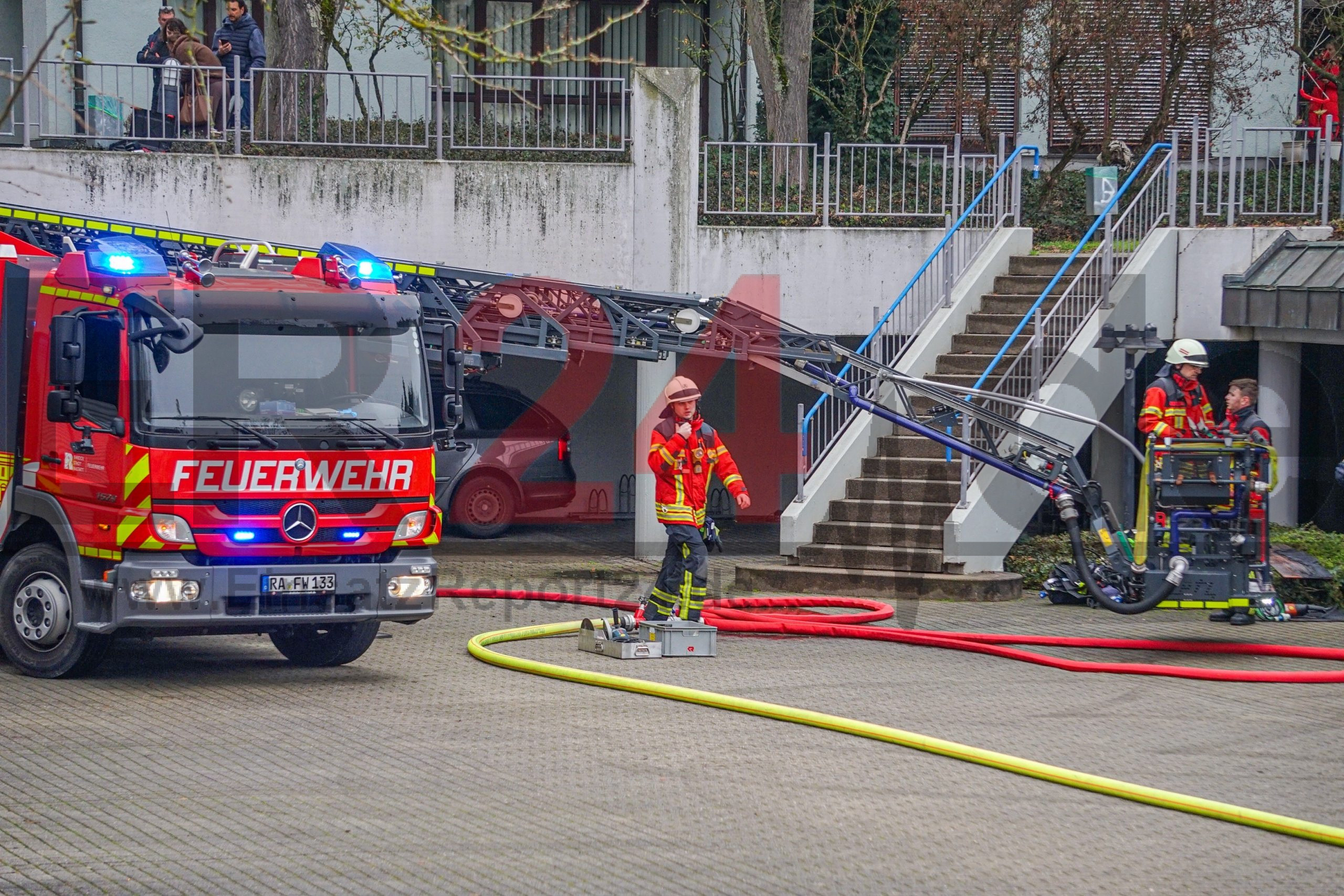 Rauch dringt aus Obergeschoss der Volksbank in der Innenstadt – Dämmung in der Wand steht in Flammen – aufwendige Löscharbeiten der Feuerwehr dauern mehrere Stunden an – Drohne im Einsatz
