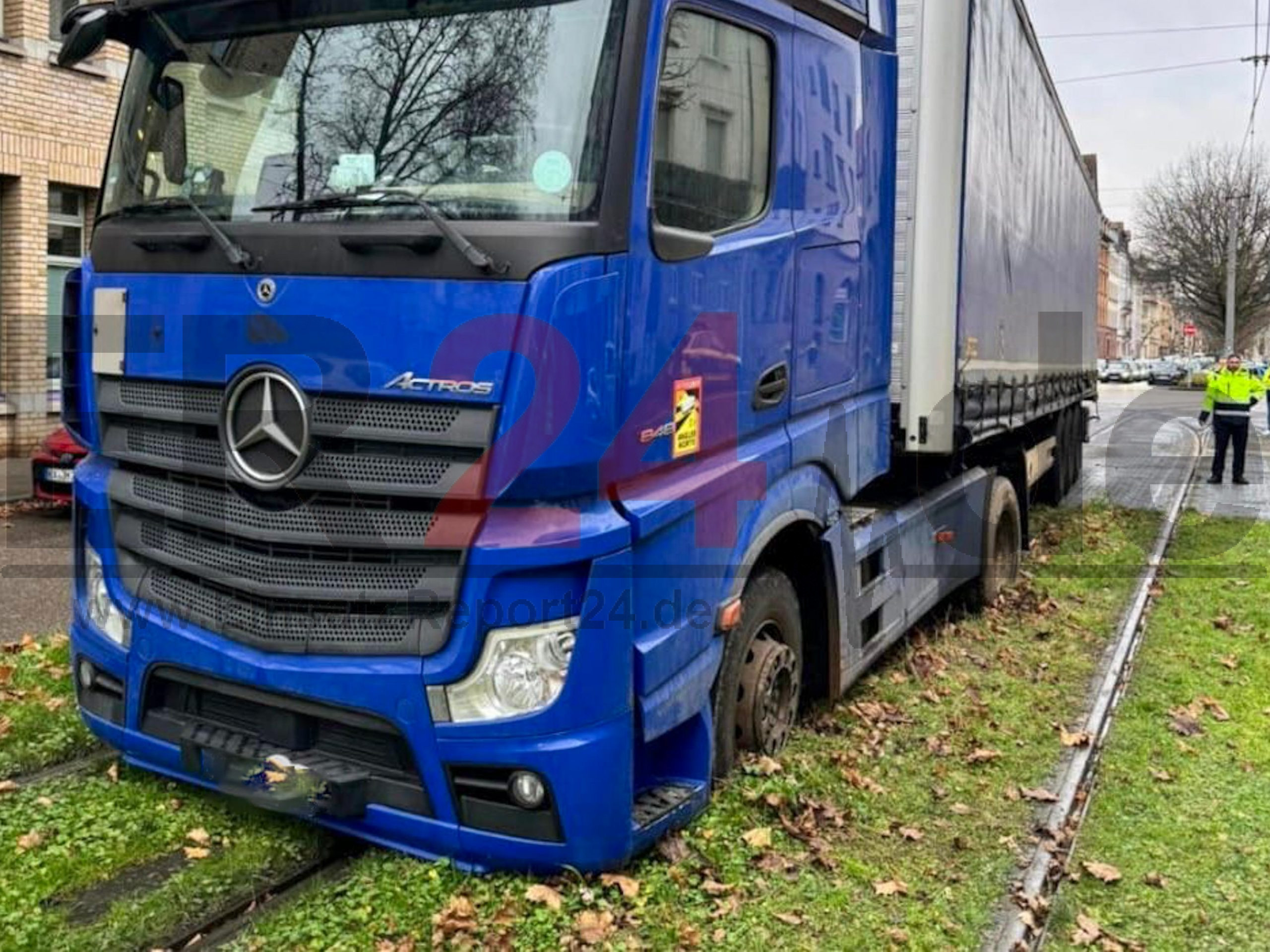 Im weichen Grünstreifen eingesackt – Bahnverkehr nach Fahrfehler von Brummi blockiert