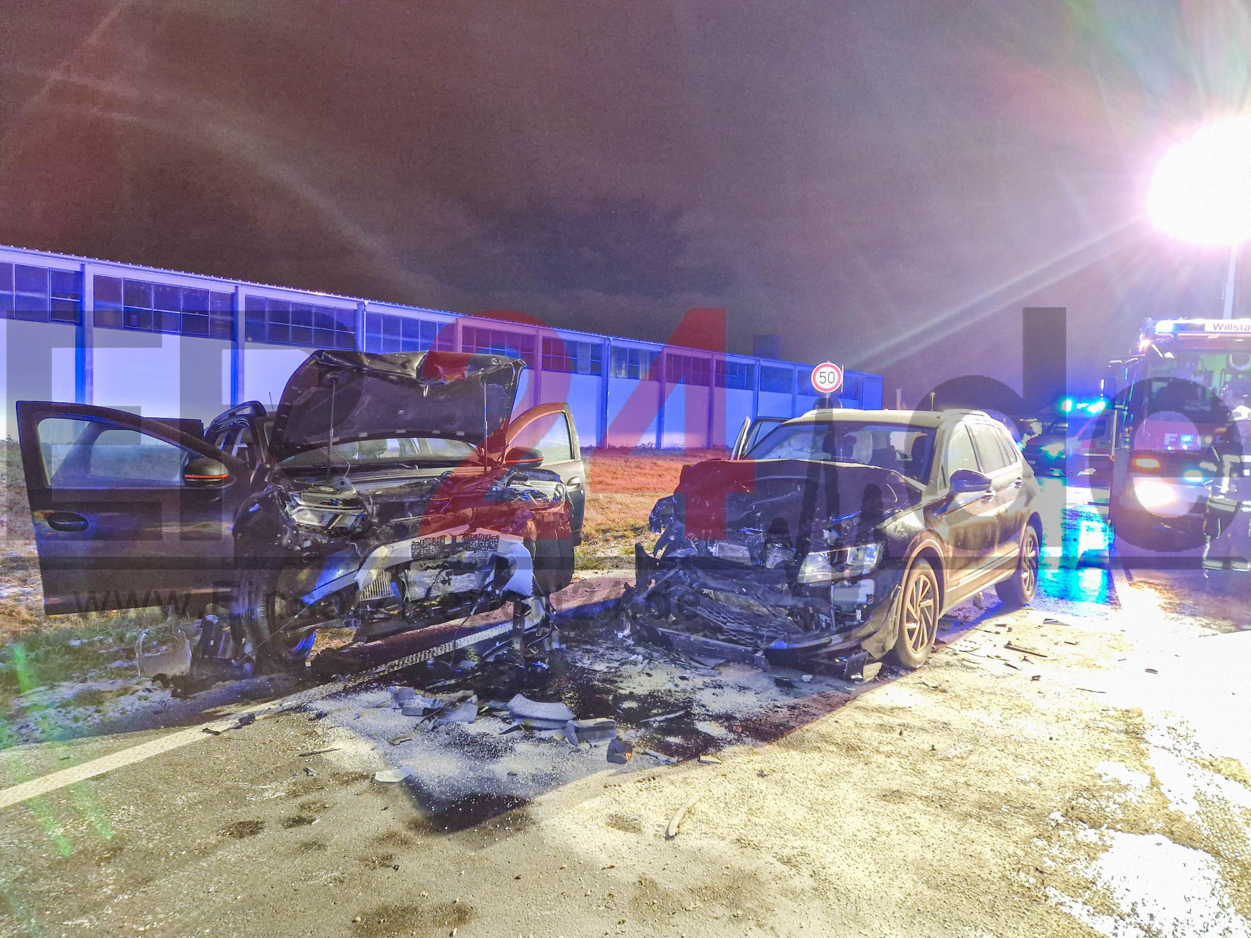 Feuerwehr und Rettungskräfte im Großeinsatz vor Ort – Bundesstraße voll gesperrt – beide Autos total beschädigt – Deutscher Wetterdienst warnt vor Schnee, Eisregen und Minusgraden mit hoher Glättegefahr auf den Straßen